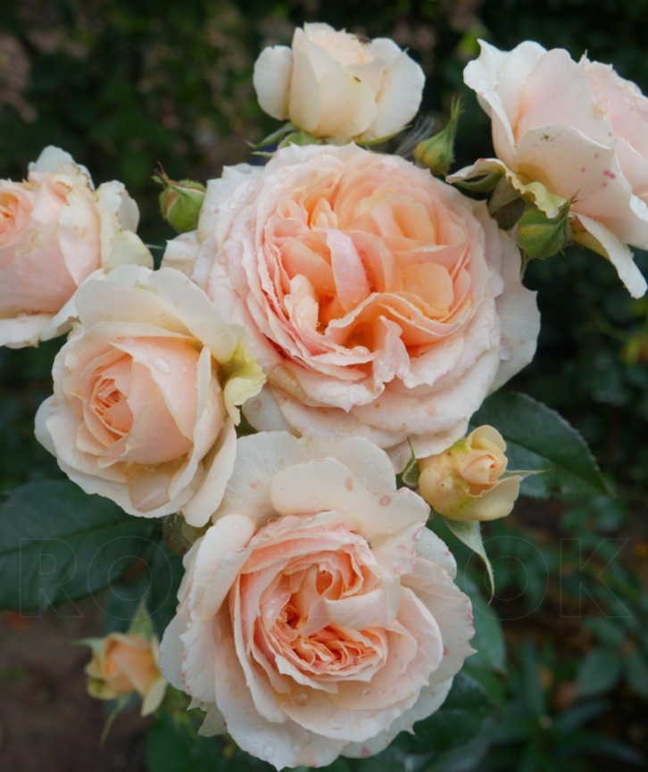 Exquisite old fashioned blooms. Apricot/salmon in the center with lighter outer petals. They stand in clusters. Overpowering fruity fragrance. 100X100 cm or 3X3 feet. Blooms from June till October. Disease resistant all the way and rain tolerant. Zone 6b to 9b.